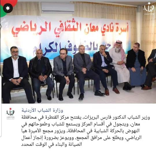 Under the auspices of HE Minister of Youths, Al-Qantarah Center was opened in the Governorate of Ma’an. During the celebration, the Center honored the CEO of Shams Ma’an Company by virtue of the support extended by the Company – 2019